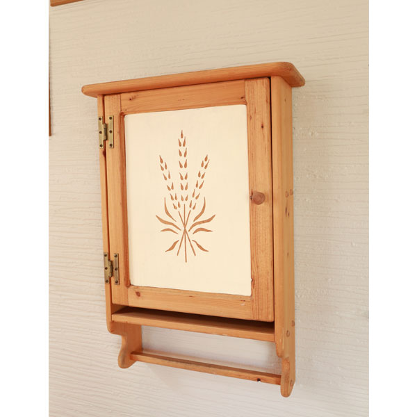 アンティークなインテリア、シンプルでナチュラルテイストな麦の穂柄が可愛い木製の壁掛けボックス ウォールシェルフです。 シンプルなデザインは、どんなインテリアにも合わせやすいです。 下部にタオルをかけて、洗面収納に使用したりS字フックを使ってキッチン用品をかけてキッチン収納として使用することもできます。 中は2段になっているのでたくさん収納もできます。 三角フック2点付きなの簡単にお取付出来ます。