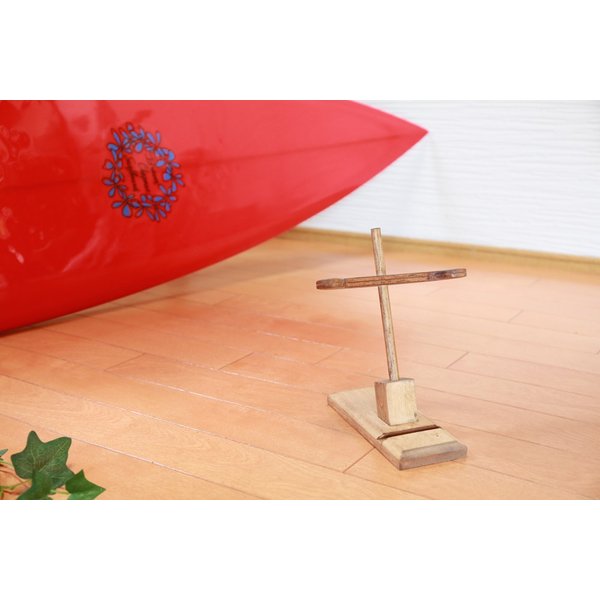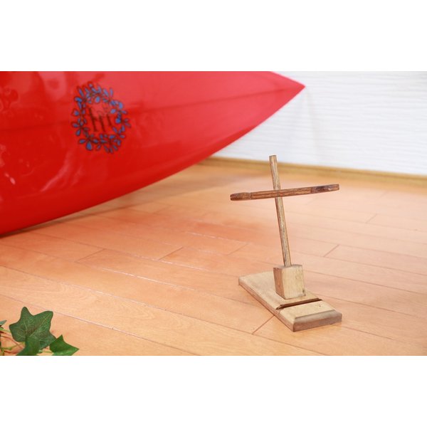 木製 サーフボードのオブジェ用スタンドです。ミニサーフボードLサイズ用です。 ミニサーフボードをスタンドに立て掛ければ、玄関先やリビングTVボードの上など すぐにインテリアとして活躍します。 ウェルカムボードとしてお使いいただくときもとても便利です。 ワトコオイル仕上げです。