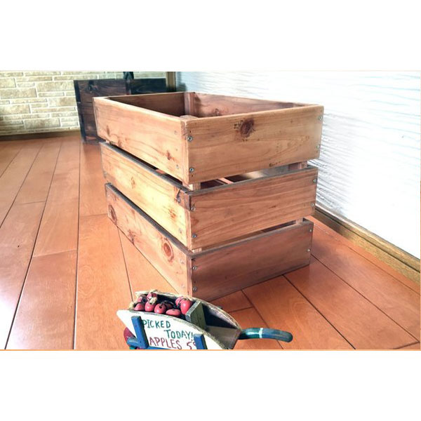 ガーデニング、食物保管にマルチに活躍してくれること間違いなしの万能木箱です。