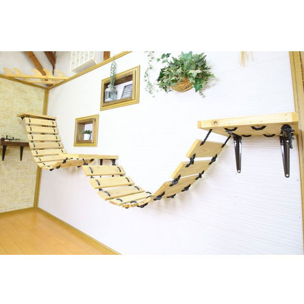室内飼いの猫ちゃんは運動不足になりがちですが、吊り橋があれば猫ちゃんたちも